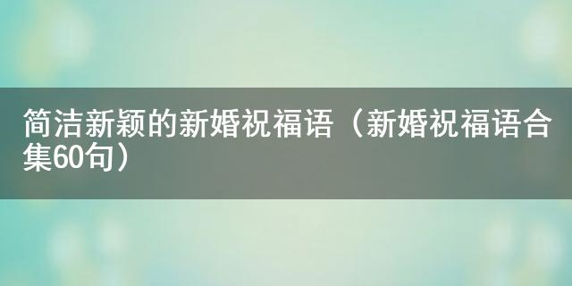 哈喽小伙伴们 ,今天给大家科普一个小知识。在日常生活中我们或多或少的都会接触到简洁新颖的新婚祝福语(新婚祝福语合集60句)方面的一些说法,有的小伙伴还不是很了解,今天就给大家详细的介绍一下关于简洁新颖的新婚祝福语(新婚祝福语合集60句)的相关内容。