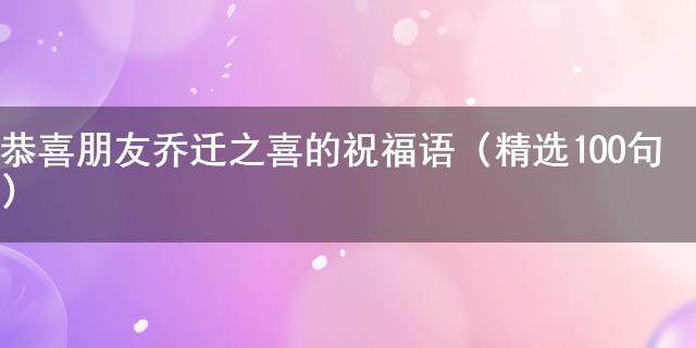 随着社会越来越发达,大家都选择在网络上汲取相关知识内容,比如恭喜朋友乔迁之喜的祝福语(精选100句),为了更好的解答大家的问题,小编也是翻阅整理了相应内容,下面就一起来看一下吧!