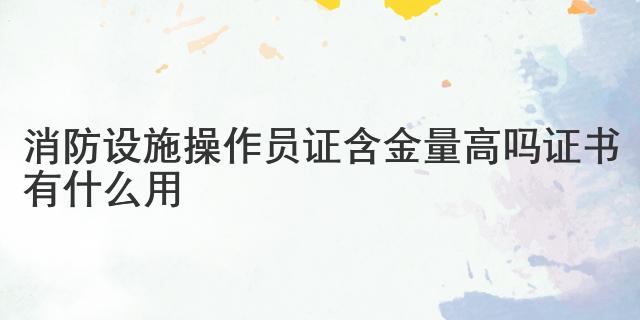 消防设施操作员证含金量很高。是国家准入证。消防法规定,自动消防系统的操作人员必须持证上岗并遵守操作规程。也就是说,要想从事消防工作,消防设施操作员证是必不可少的。