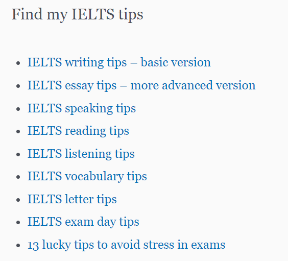 由雅思老师Dominic Cole创办的网站,分类非常详细,每个Part下都有实用的技巧和sample。适合大家用来积累口语和写作的语料。素材内容也干货满满,比较容易理解吸收。网站主要针对口语和写作部分,这也是中国学生偏弱的两科,如果需要在口语和写作方面提升的同学们可以多去逛逛。