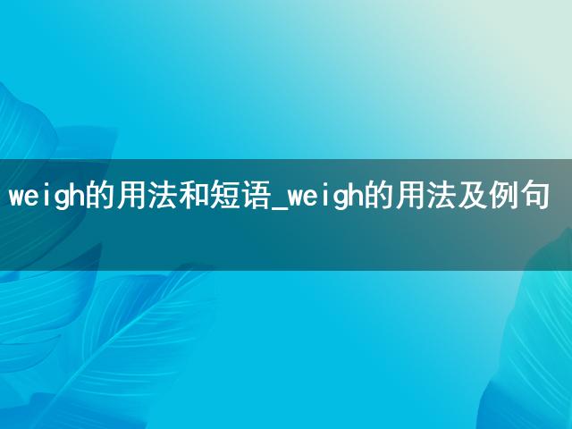 提起weigh的用法和短语_weigh的用法及例句大家在熟悉不过了,被越来越多的人所熟知,那你知道weigh的用法和短语_weigh的用法及例句吗?快来和小编一起去了解一下吧!