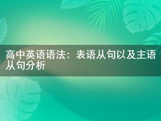 英语的语法一直是一个非常重要的成分,是英语学习汇总必不可少的一个基石,在高中英语的学习中,如果能够掌握一个比较全面熟练的语法知识体系,在后续的英语学习过程中会非常容易并且游刃有余,今天就让我们一起来学习关于高中英语语法中的:表语从句以及主语从句吧。