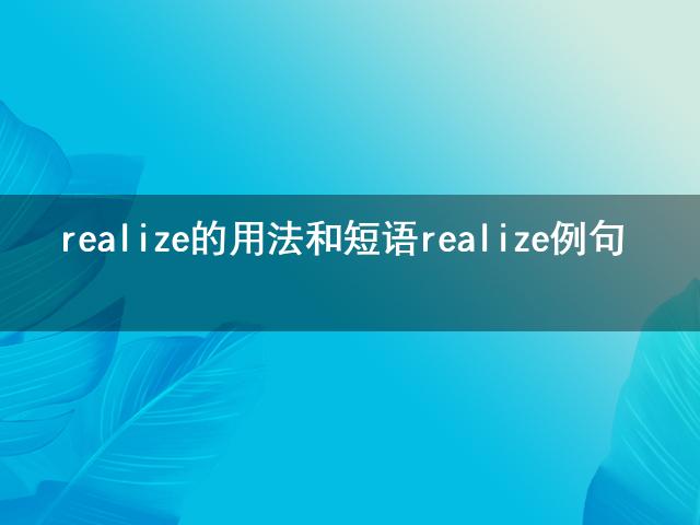 提起realize的用法和短语 realize例句大家在熟悉不过了,被越来越多的人所熟知,那你知道realize的用法和短语 realize例句吗?快来和小编一起去了解一下吧!