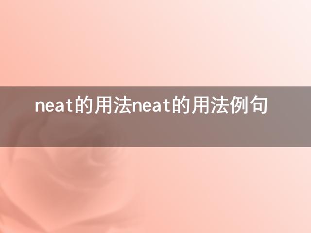 在生活中,很多人都不知道neat的用法 neat的用法例句是什么意思,其实他的意思是非常简单的,下面就是小编搜索到的neat的用法 neat的用法例句相关的一些知识,我们一起来学习下吧!