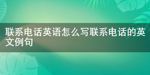 提起联系电话英语怎么写 联系电话的英文例句大家在熟悉不过了,被越来越多的人所熟知,那你知道联系电话英语怎么写 联系电话的英文例句吗?快来和小编一起去了解一下吧!