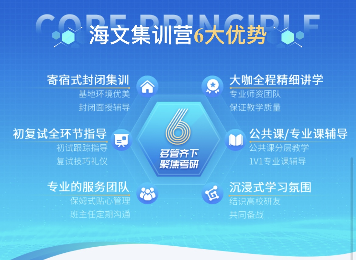 万学教育海文考研作为万学教育集团旗下的主营产品,衍生于国内研究生考试培训项目,后经国家教委批准正式注册成立,成为了中国研究生考前培训事业的创始机构,充分整合优质教育资源,不断研发先进辅导技术,创造了考研培训领域的所有常规辅导课程和高级辅导系统,成功辅导了众多考研学子,实现了考研复习效率的提升和考研成功率的革命性腾飞。